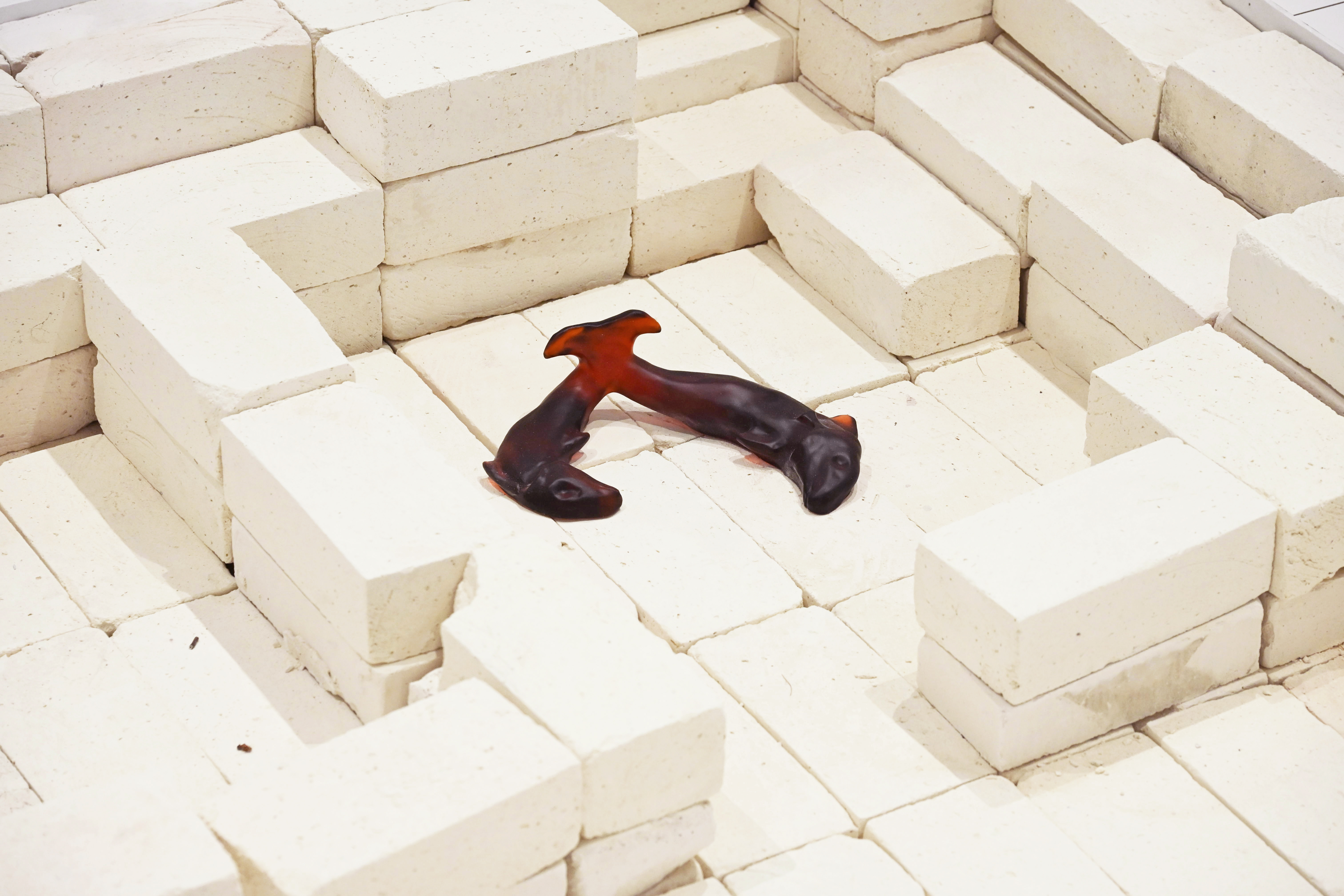 Insulating fire bricks, 7 glass sculptures